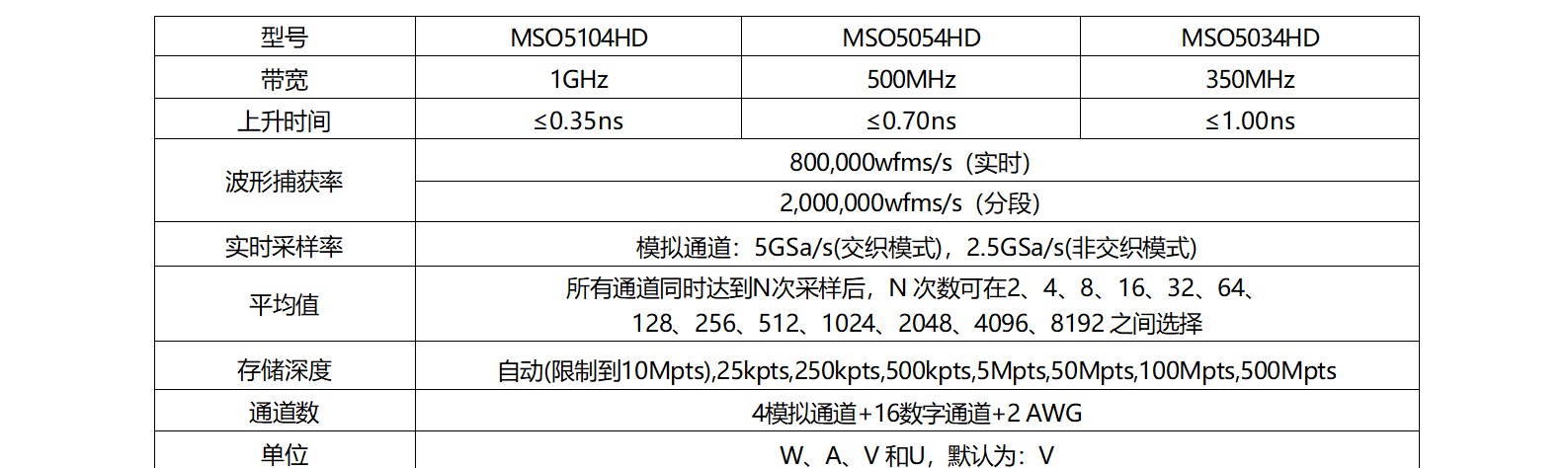 最高存储深度达500Mpts 波形捕获率高于2,000,000wfms/s。