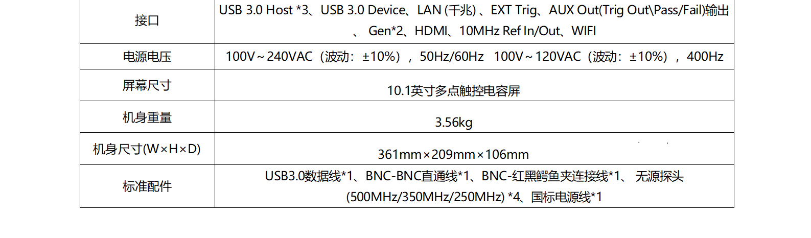 模拟通道带宽:1 GHz/ 500 MHz/350 MHz。