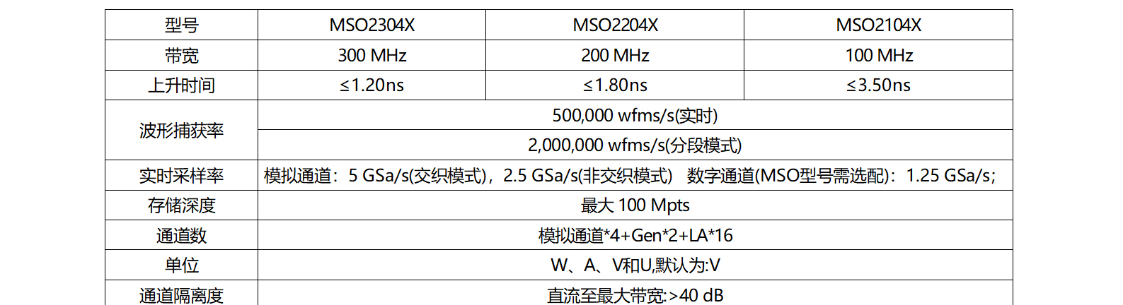 模拟通道带宽:300 MHz/200 MHz /100 MHz 。