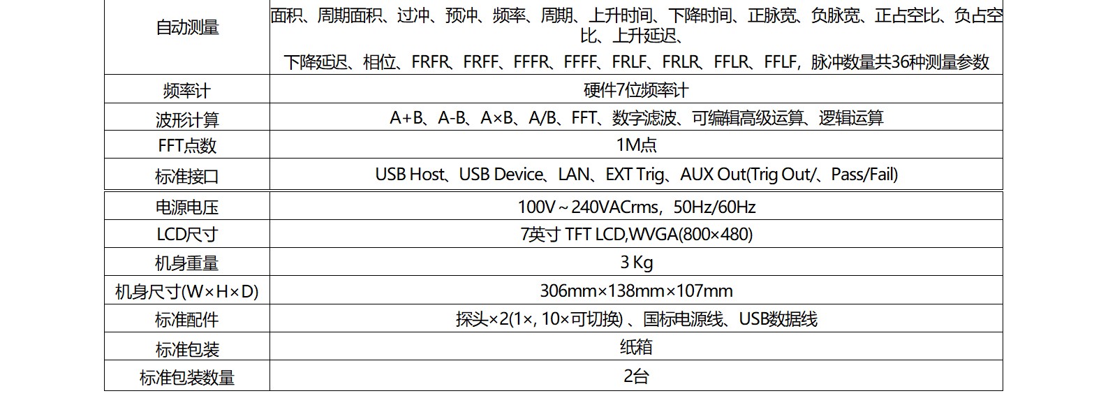 模拟通道带宽:100MHz/200MHz。