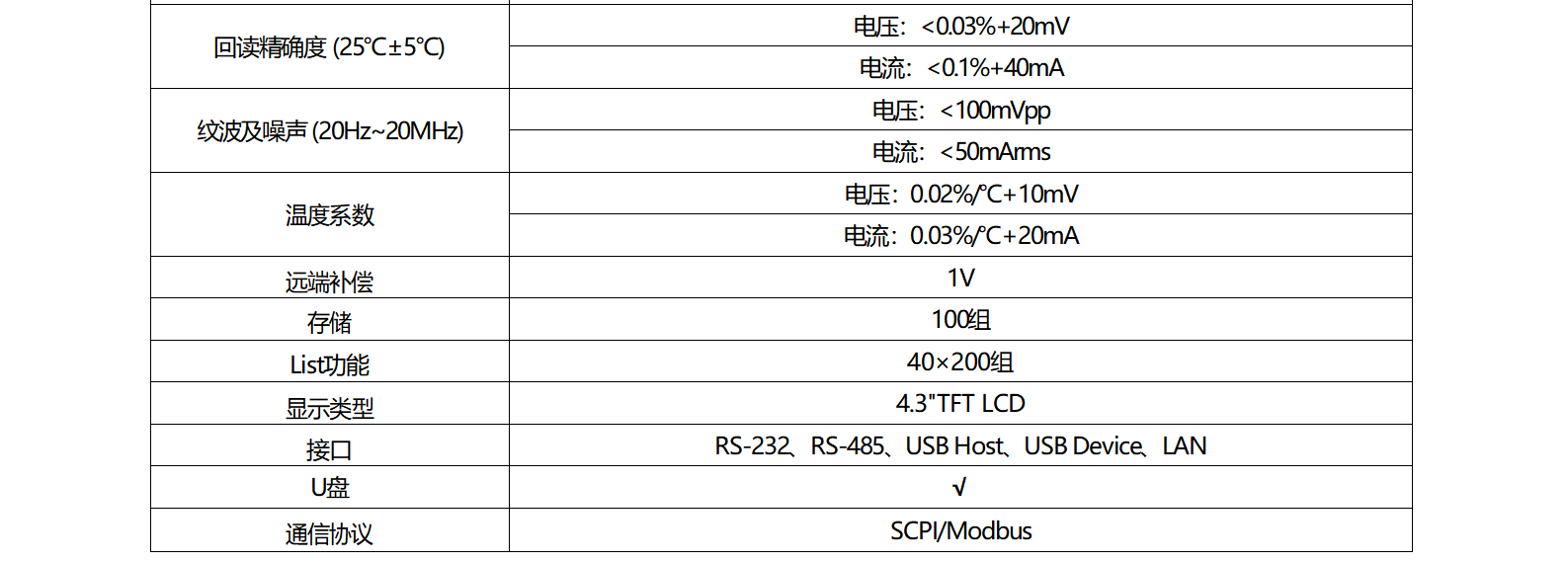 支持SCPI/Modbus协议。