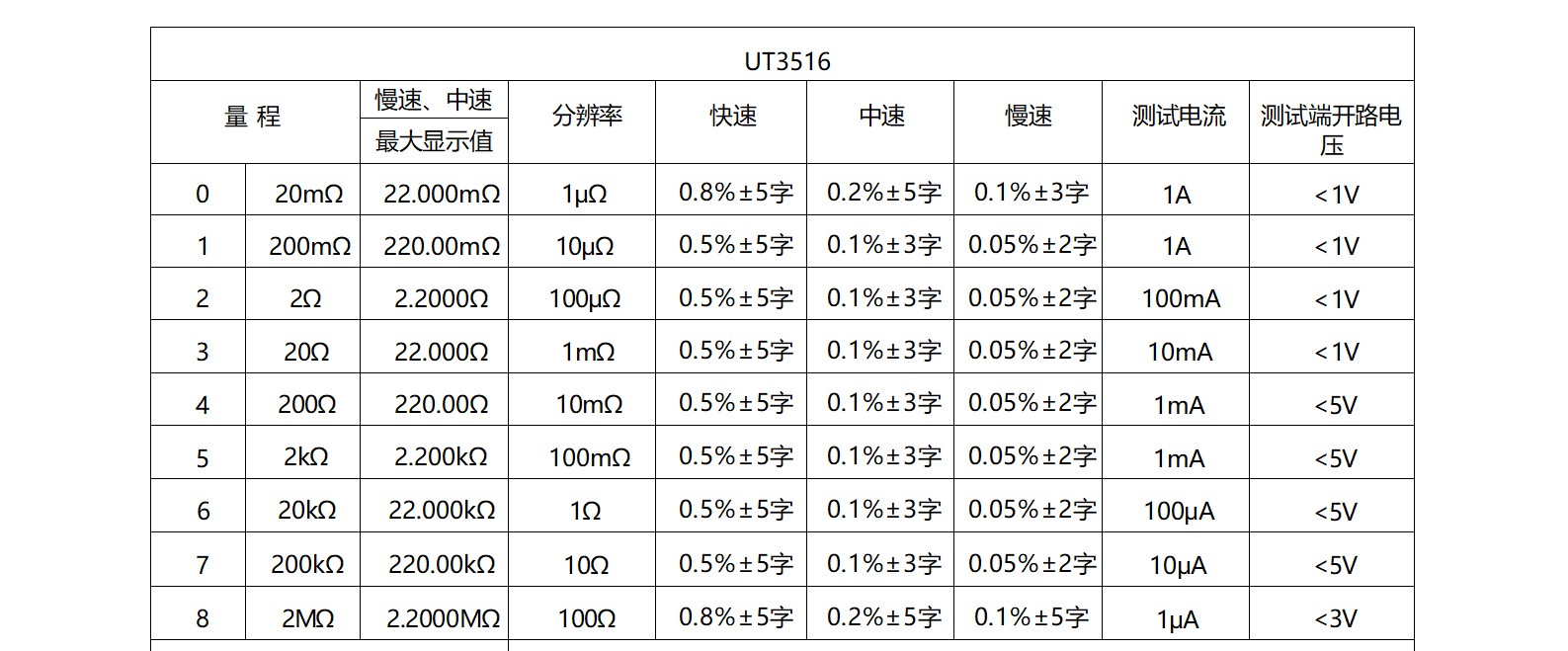UT3516测量范围:1μΩ-2MΩ。