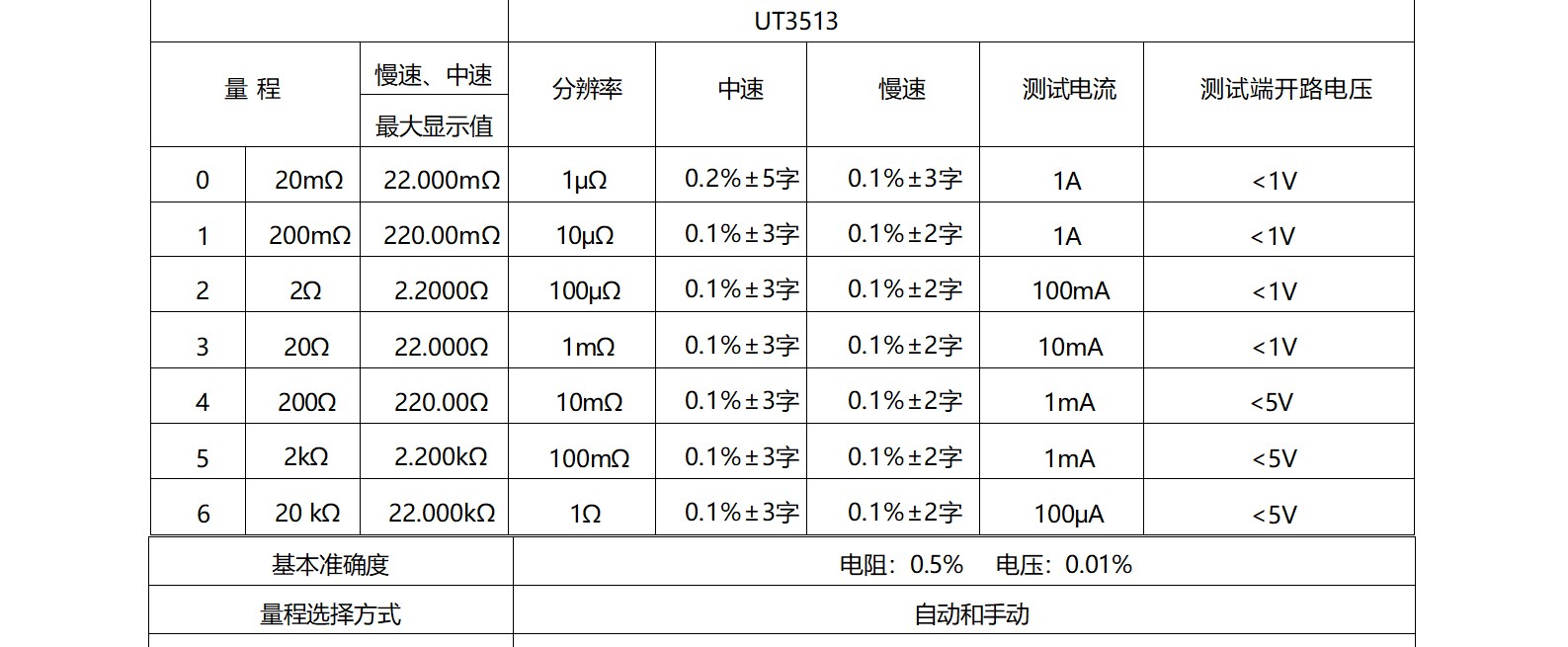 UT3513测量范围:1μΩ-20kΩ。