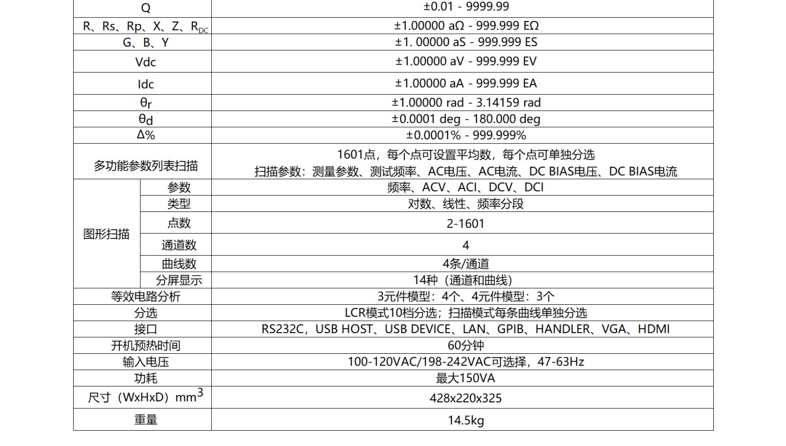 电流量程:20pA-20mA,电流分辨率达0.1fA(10-16A)。