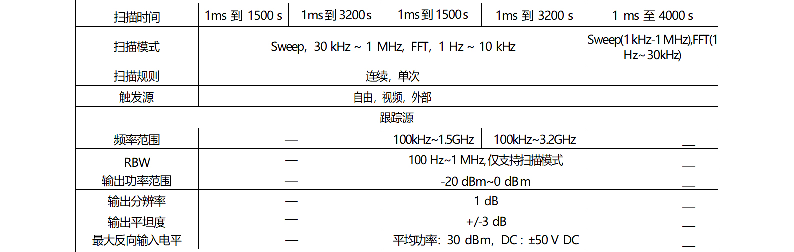 频谱分析频率范围:9kHz~1.5GHz/3.2GHz。