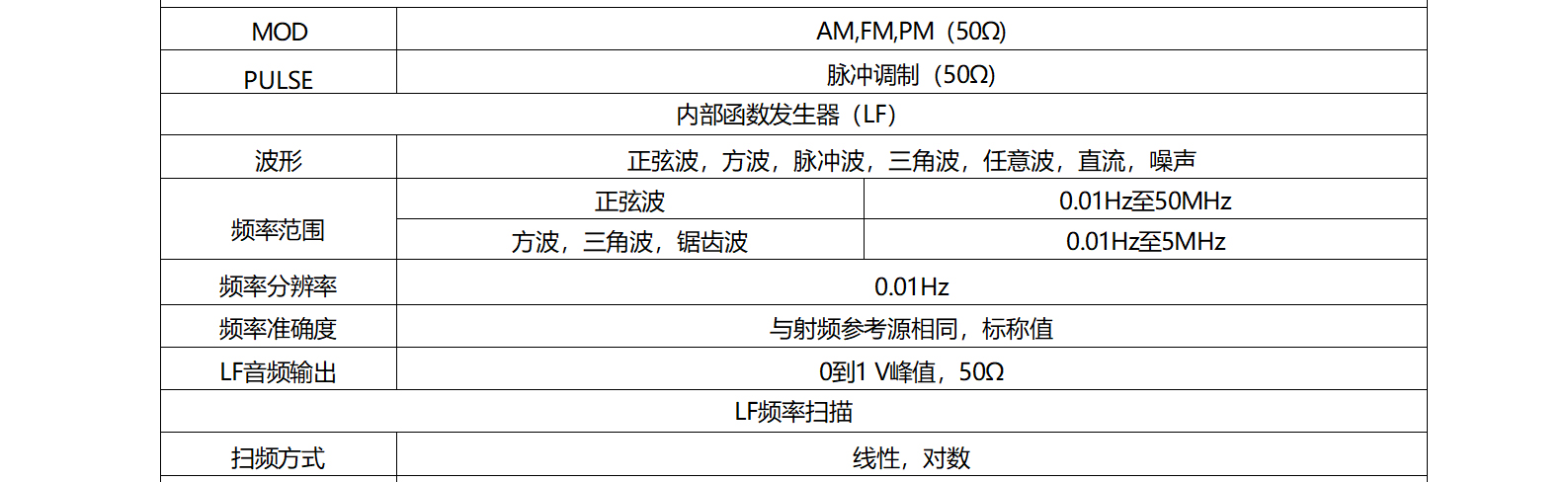 支持AM/FM/PM/φM模拟调制,内部/外部/内部+外部调制方式。