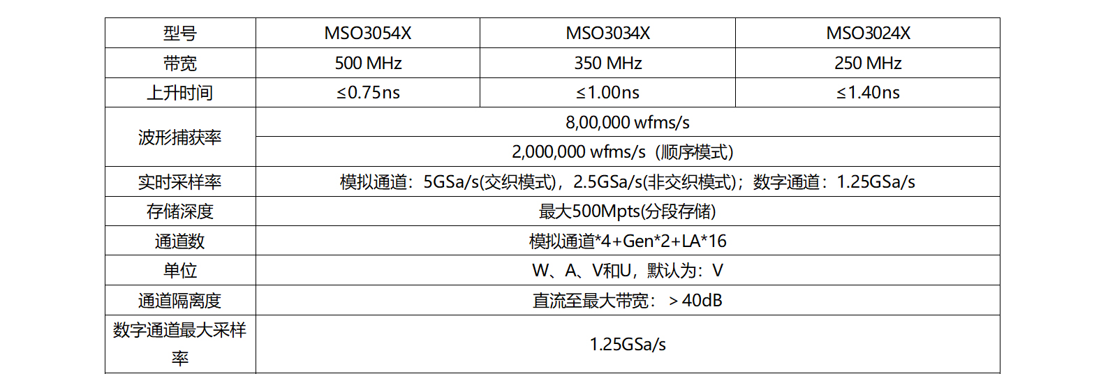 模拟通道带宽:500 MHz/350 MHz /250 MHz 。